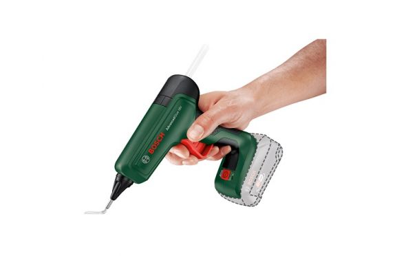 - Το AdvancedGlue 18V είναι ένα ισχυρό πιστόλι θερμοκόλλησης μπαταρίας που φθάνει την ισχυρή απόδοση ενός εργαλείου ρεύματος και είναι συμβατό με το σύστημα μπαταρίας 18 V της Bosch.