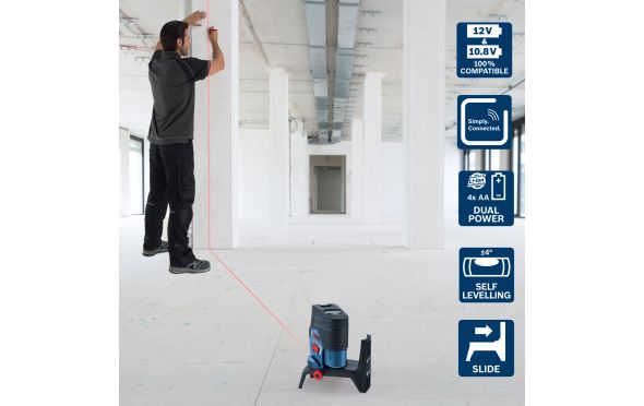 Κατάλληλο για εφαρμογές όπως: Ανάρτηση οροφών, ευθυγράμμιση τοίχων ξηρής κατασκευής μέσω κάθετων ακτίνων λέιζερ, εγκαταστάσεις κλιματισμού και ηλεκτρονικές εγκαταστάσεις χάρη στην απλή μεταφορά των σημείων κατακορύφου, πλήρης μεταφορά ράστερ φωτισμού, χωροστάθμηση επιφανειών για την ολοκλήρωση εργασιών στον εσωτερικό χώρο, όπως την ευθυγράμμιση τελικών σημείων αναφοράς για την ακριβή ρύθμιση της θέσης.