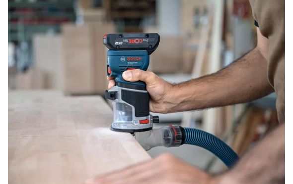 - Επιπλέον, το GKF 18V-8 είναι το μοναδικό κουρευτικό περιθωρίων 18 V στον κόσμο με προσαρμογείς απορροφητήρα για φρεζάρισμα επιφανειών και ακμών, παρέχοντας εξαιρετικά αποτελεσματική συλλογή της σκόνης σε κάθε περίπτωση.