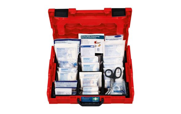 - Είμαστε στην ευχάριστη θέση να σας βοηθήσουμε: Το σετ πρώτων βοηθειών Bosch Professional είναι συμβατό με το DIN 13157 και διατίθεται σε ένα L-BOXX 102, το οποίο αποτελεί μέρος του συστήματος μεταφοράς Bosch.