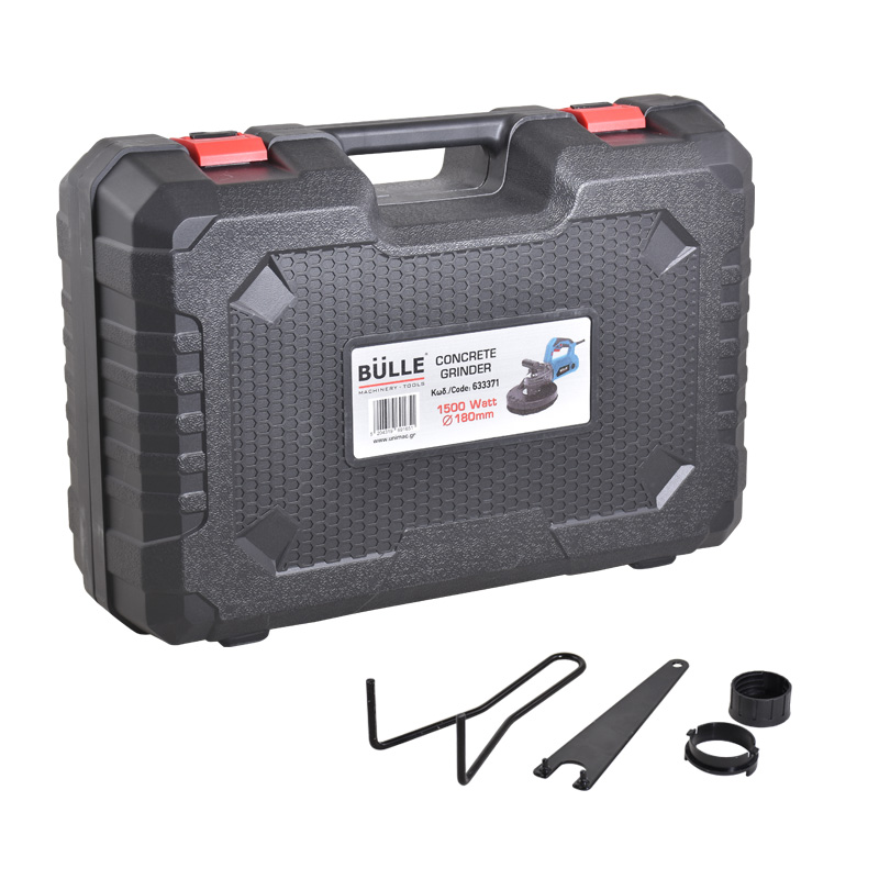 Τριβείο μπετού ειδικής σχεδίασης, υψηλής ροπής, με ισχυρό κινητήρα 1500Watt.Με διαμαντόδισκο με 2 σειρές διαμαντιών 180x22,23 mm.Με ρυθμιζόμενη ταχύτητα με ποτενσιόμετρο από 3000 έως 4000 - 6 θέσεων.Με διατήρηση σταθερών στροφών (constant speed control) για μέγιστη λειτουργικότητα και αποδοτικότητα σε διάφορα δομικά υλικά.Με ομαλή εκκίνηση (soft start).Με κλείδωμα στην σκανδάλη για διευκόλυνση του χρήστη.Με διαιρούμενο προστατευτικό κάλυμμα σκόνης για προσέγγιση των ακμών.Με υποδοχή για σύνδεση με σκούπα αναρρόφησης Φ44mm ή με σπιράλ Φ40mm.Με καλώδιο τροφοδοσίας 4 μέτρα.