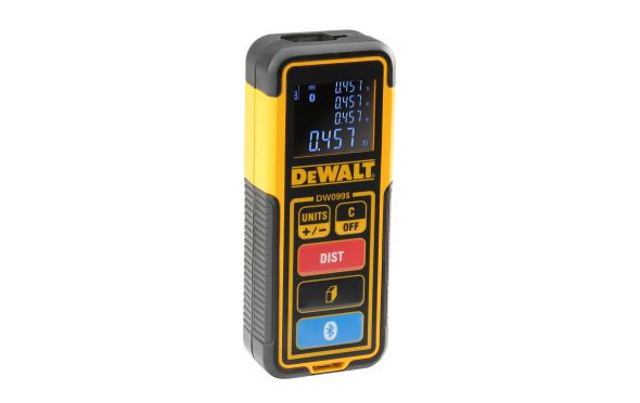 - Το Dewalt DW099S Bluetooth Measure έχει εμβέλεια 30 μέτρων και λειτουργεί σε συνδυασμό με την εφαρμογή Dewalt Measure στο Smartphone σας.