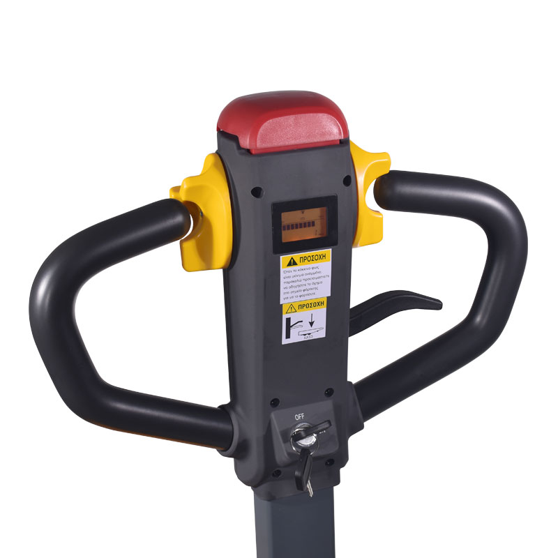 Σύγχρονο και ευέλικτο ηλεκτρικό παλετοφόρο για γρήγορη και ξεκούραστη χρήση, ακόμα και σε στενούς χώρους..Με μπαταρία 24V- LiFePO4 (Nom.Volt 25.6Vdc/20Ah/512Whr).Ηλεκτρική κίνηση μπρος - πίσω και ηλεκτρική ανύψωση.Με αφαιρούμενη (plug-in) μπαταρία που ελαχιστοποιεί το χρόνο εναλλαγής με άλλη φορτισμένη.Με οθόνη LCD που απεικονίσει την υπολειπόμενη ισχύ της μπαταρίας, πληροφορίες κωδικού σφάλματος και πληροφορίες χρόνου λειτουργίας.Διάρκεια λειτουργίας με πλήρως φορτισμένη μπαταρία: 2 ώρες.Εξωτερικός Φορτιστής 24Vdc/10A με ενδεικτική λυχνία φόρτισης και βλάβης , με ανεμιστήρα ψύξεως και χειρολάβη μεταφοράς .Χρόνος φόρτισης μπαταρίας: 2 ώρες.Άνετο, εργονομικό χειριστήριο με κομβίο χειρισμού τύπου πεταλούδας, μπουτόν έκτακτης ανάγκης, κόρνα και κλειδί ON-OFF.