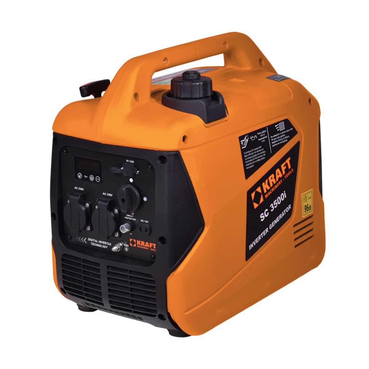 - Γεννήτρια τεχνολογίας inverter της KRAFT, ενσωματώνει ψηφιακό σύστημα ελέγχου της ποιότητας του ρεύματος, που διασφαλίζει τη σταθερή τάση (Volt) και συχνότητα (Hz).