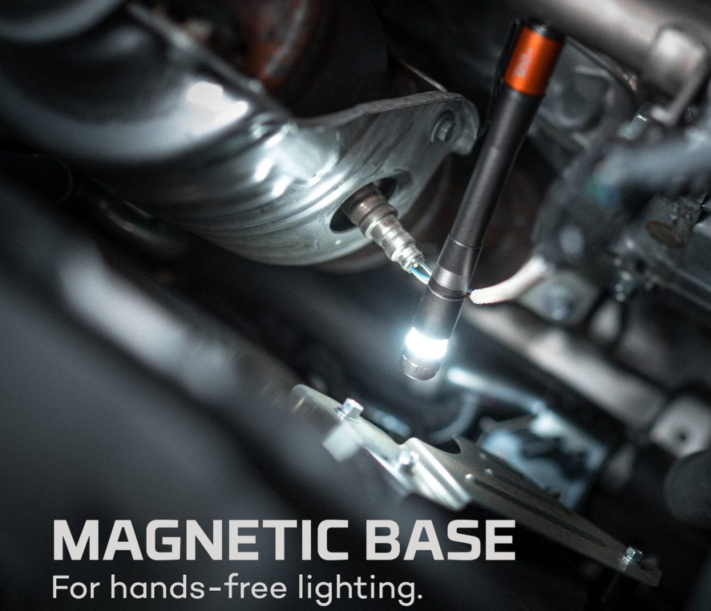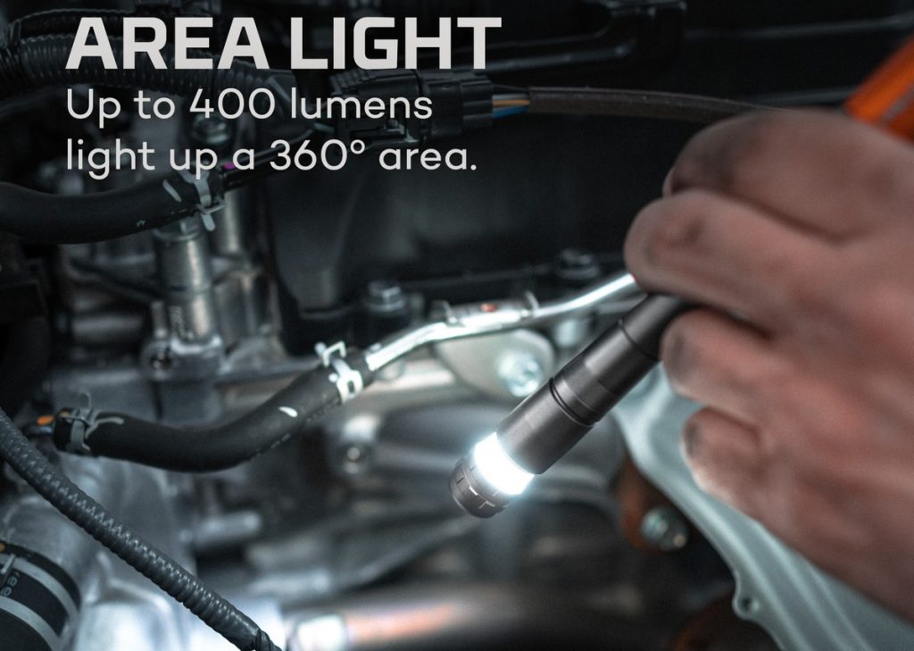 - Είναι εξοπλισμένος με δυνατή μαγνητική βάση, ατσάλινο κλιπ, 4 επιλογές φωτισμού και τεχνολογία Flex-Power, η δίνει στον φακό τη δυνατότητα να λειτουργεί είτε με επαναφορτιζόμενη είτε με μπαταρίες ΑΑΑ.