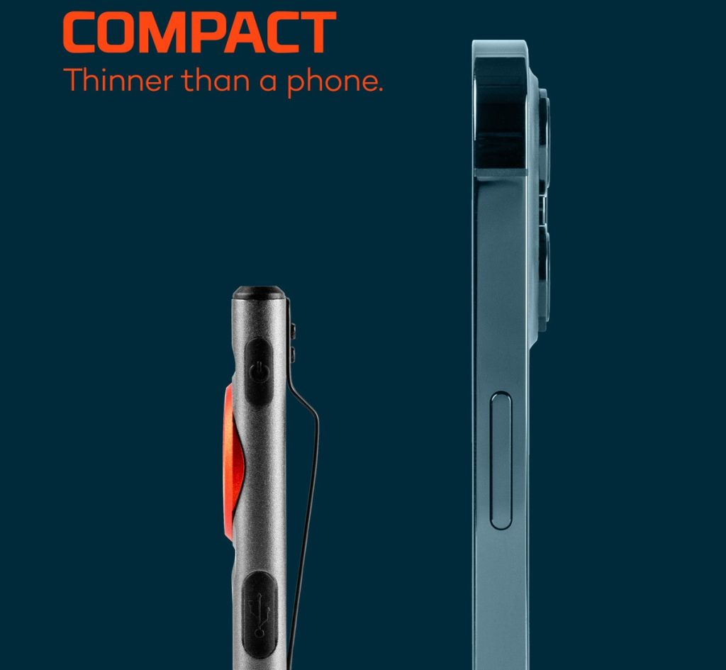 Εντυπωσιακά φωτεινός, αξιοσημείωτα μικρός.Ο επαναφορτιζόμενος φακός Slim Mini αποδίδει ισχυρά 250 lumens σε υπέρ μικρό μέγεθος. Δεν είναι πολύ μεγαλύτερος από ένα φυλλαράκι τσίχλας και διαθέτει ανθεκτικό κλιπ τσέπης και ισχυρή μαγνητική βάση για εύκολη χρήση με ελεύθερα χέρια.Επαναφορτιζόμενος με καλώδιο USB-C (περιλαμβάνεται).Ανθεκτικό κλιπ τσέπης.Ένδειξη φόρτισης μπαταρίας.Ανοδιωμένο αλουμίνιο βαθμού αεροσκαφών.Αδιάβροχος (IPX4) και ανθεκτικός στην πρόσκρουση.Ισχυρή μαγνητική βάση.Λειτουργεί με 1 εσωτερική επαναφορτιζόμενη μπαταρία Li-Ion 602040 450mAh 3.7v.