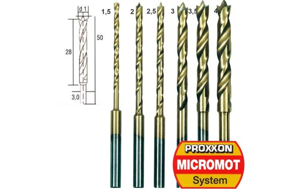 Proxxon - Σετ Ελικοειδή Τρυπάνια Ακίδας από Χάλυβα HSS με Επίστρωση Τιτανίου - 6 Τεμαχίων