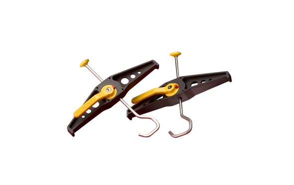 - Διαθέτει 2 βραχίονες από ενισχυμένο υλικό, το οποίο θυμίζει πλαστικό (glass filled nylon) όμως είναι πολύ πιο ισχυρό, σταθερό και ανθεκτικό, 2 μεταλλικούς γάντζους από ανοξείδωτο ατσάλι 304, οι οποίοι αγκιστρώνουν επάνω στην μπάρα οροφής και ασφαλίζουν τον εξοπλισμό σας και μοχλούς ταχείας ασφάλισης/απασφάλισης για να εξασφαλίζεται στον χρήστη 5πλάσια ταχύτητα φόρτωσης/εκφόρτωσης συγκριτικά με αντίστοιχα προϊόντα της αγοράς.
