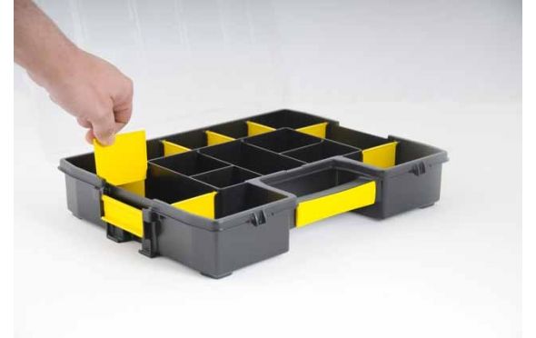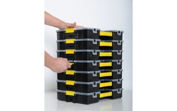 Ειδική δομή στο καπάκι - Ασφαλίζεται το περιεχόμενο των εσωτερικών διαχωριστικών. Κρατά τα μικρα εξαρτήματα στη θέση τους αποτρέποντας τη μετακίνηση από το ένα διαμέρισμα στο άλλο.