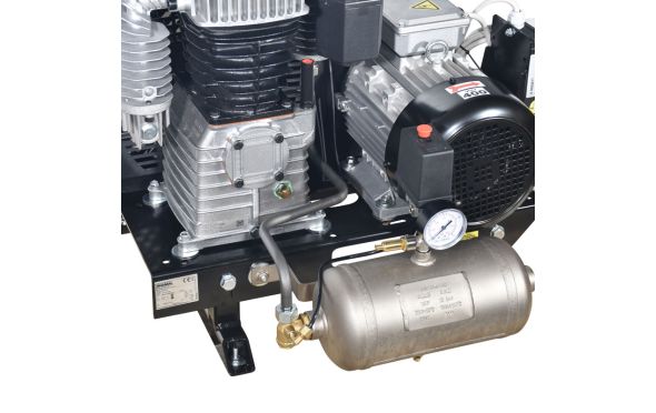 - Ο αεροσυμπιεστής διαθέτει καζανάκι προσυγκεντρώσεως 3,3 λίτρα με αντεπίστροφη , πιεσοστάτη , βαλβίδα ασφαλείας, μανόμετρο και 4 αντικραδασμικά πέλματα.