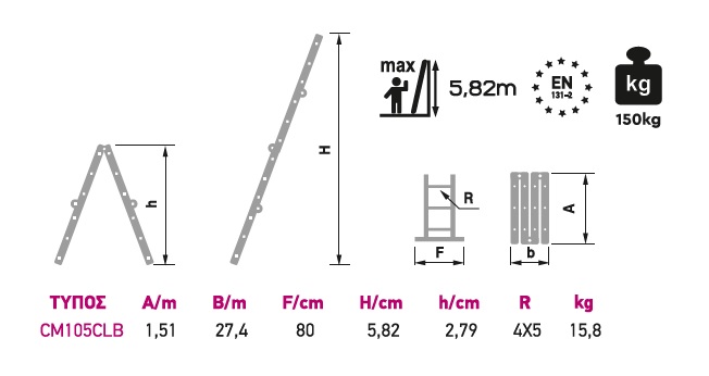 - Η σκάλα παρέχει όλες τις ευρωπαϊκές προδιαγραφές EN131.