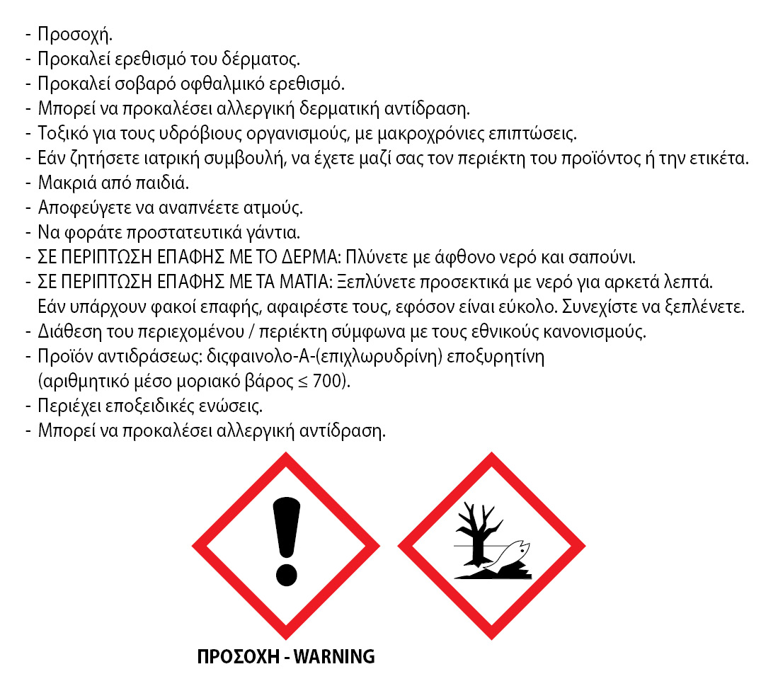 • Aντέχει στο νερό, διαλύματα οξέων, πετρέλαιο και διαλυτικά