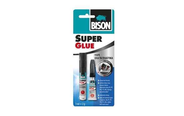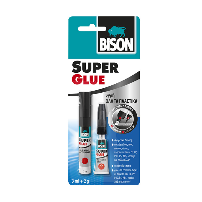 Bison - Super Glue All Plastics Κόλλα Στιγμής για Συγκόλληση Όλων των Κοινών Τύπων Πλαστικών 3ml+2g