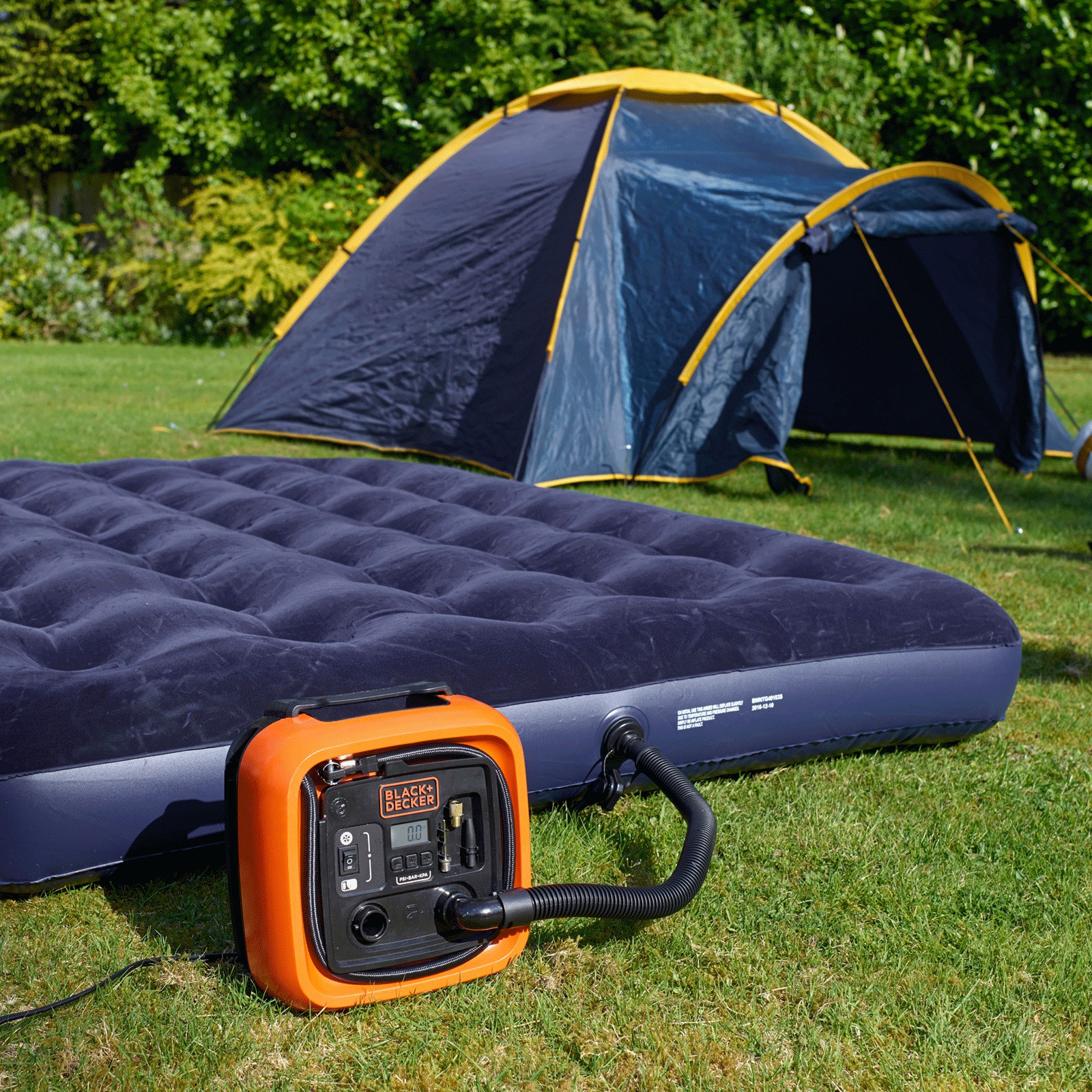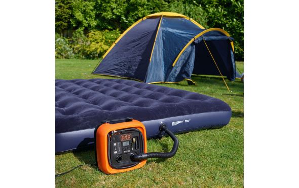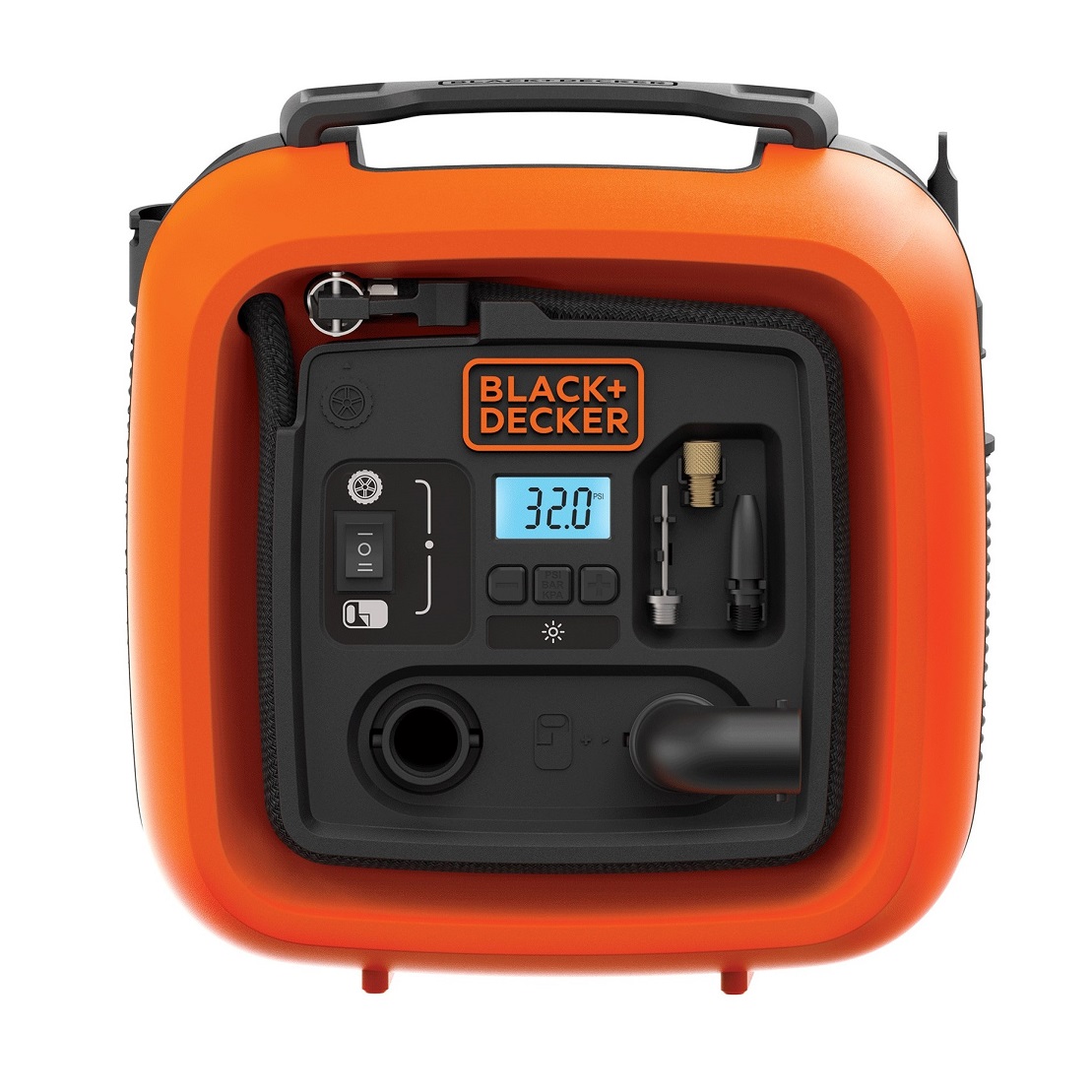 Ψηφιακός μετρητής για ένδειξη πίεσης και δυνατότητα μεταβολής στην επιθυμητή πίεση. Αυτόματο κλείσιμο που σταματάει τη μονάδα μόλις επιτευχθεί η επιθυμητή πίεση. Αποθηκευτικός χώρος για τα αξεσουάρ πάνω στο εργαλείο. Φουσκώνει λάστιχα αυτοκινήτου/ποδηλάτων/μοτοσυκλετών, μπάλες ποδοσφαίρου κ.λπ.