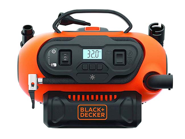 Κομπρεσέρ φουσκώματος με τρεις διαφορετικές πηγές τροφοδοσίας: Ρεύμα 220V, αντάπτορα αυτοκινήτου 12V, μπαταρία Li-Ion 18V (δεν περιλαμβάνεται). Ιδανικό για να φουσκώνετε λάστιχα αυτοκινήτου και ποδηλάτων, στρώματα, μπάλες και άλλα. Ψηφιακός μετρητής για ένδειξη πίεσης και δυνατότητα μεταβολής στην επιθυμητή πίεση. Αυτόματο κλείσιμο που σταματάει τη μονάδα μόλις επιτευχθεί η επιθυμητή πίεση. Ως και 160PSI για υψηλή πίεση και όγκο φουσκώματος. Αποθηκευτικός χώρος για τα αξεσουάρ πάνω στο εργαλείο.