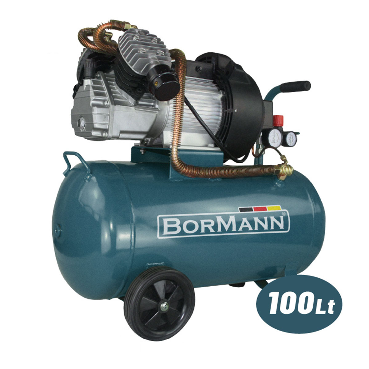 Bormann - BAT5015 Αεροσυμπιεστής Μονομπλόκ 100Lt - 3.0Hp.Με δικύλινδρη κεφαλή V.
