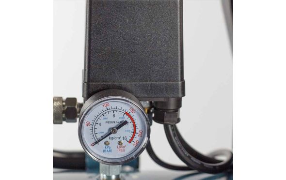 • Με δύο μανόμετρα για ένδειξη πίεσης αέρα καζανιού και εξόδου.