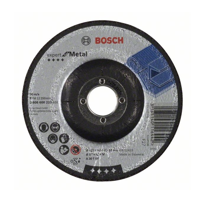 Ο δίσκος λείανσης Expert for Metal έχει εντυπωσιακά μεγάλη αντοχή κατά τη λείανση μεταλλικών επιφανειών και προσφέρει μέγιστη ασφάλεια. Η επιφάνεια λείανσης από αλουμίνα κορυφαίας ποιότητας, τα επιλεγμένα ενεργά πληρωτικά υλικά και οι προσμίξεις σε μια σύγχρονη μήτρα ρητίνης φαινόλης είναι εξαιρετικά κατάλληλα για μεταλλικές εφαρμογές. Ακόμα, το κατασκευασμένο με ακρίβεια ύφασμα από υαλονήματα διασφαλίζει την υψηλή σταθερότητα του δίσκου και μέγιστη ασφάλεια κατά την εκτέλεση εργασιών. Ενδείκνυται για τη λείανση μεταλλικών επιφανειών. Είναι κατάλληλος για γωνιακούς λειαντήρες χειρός.
