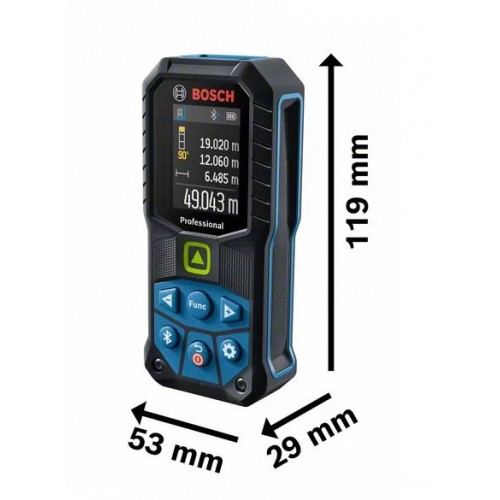 - Διαθέτει ανάδρασης ήχου και δόνησης για την επαλήθευση της επιτυχίας των μετρήσεων και βελτιωμένο χρόνο λειτουργίας της μπαταρίας (σε σύγκριση με το προηγούμενο μοντέλο GLM 50 C Professional).