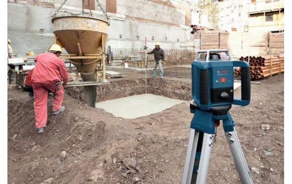 Το ευκολόχρηστο περιστροφικό λέιζερ για τον εξωτερικό χώρο Απλός χειρισμός: Λειτουργία ενός κουμπιού και αυτονόητη ένδειξη Αυτοχωροστάθμηση 8 % (± 5°) στην οριζόντια χρήση Αυτόματη λειτουργία προειδοποίησης κραδασμών εμποδίζει τα σφάλματα χωροστάθμησης σε περίπτωση κραδασμών ή δονήσεων Μεγάλη εμβέλεια μέχρι και 400 m Στιβαρό περίβλημα καθώς και προστασία από σκόνη και υγρασία IP 56