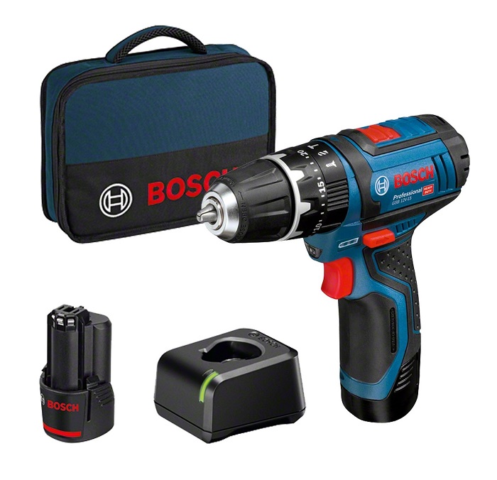 Bosch - GSB 12V-15 Κρουστικό Δραπανοκατσάβιδο Μπαταρίας (2x2.0Ah) σε Υφασμάτινη Θήκη