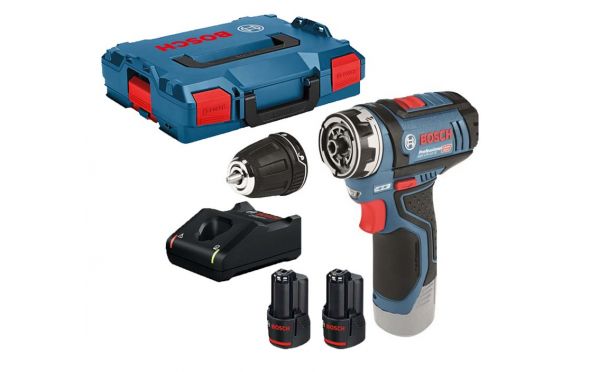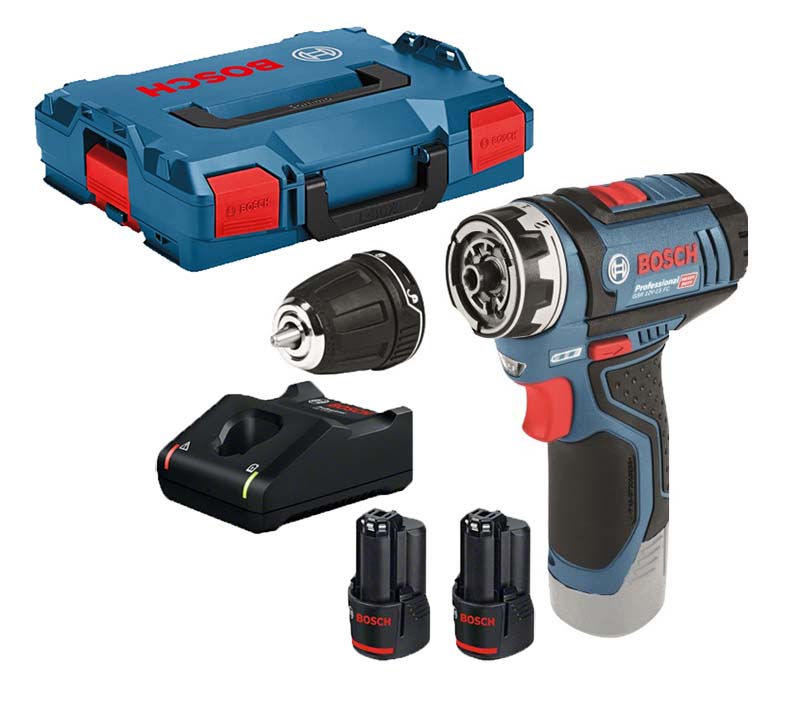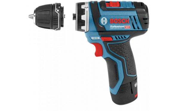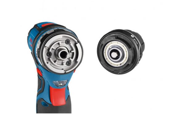 Δραπανοκατσάβιδο μπαταρίας GSR 12 V-15 FC FlexiClick Professional. Συμβατό με όλες τις μπαταρίες 10.8 V και 12 V. Τσοκ δραπάνου GFA 12-B Professional  το οποίο διαθέτει μια λειτουργία αυτόματου κλειδώματος και παίρνει τρυπάνια έως δέκα χιλιοστά.