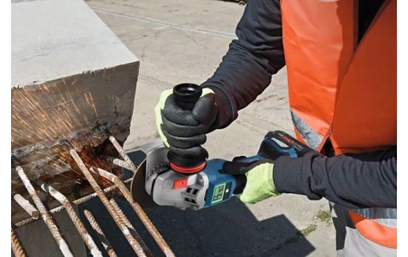 • Το GWS 18V-15 SC Professional διαθέτει επίσης σταθερή ταχύτητα, προστασία υπερφόρτωσης, προφυλακτήρα χωρίς κλειδί, παξιμάδι σύσφιγξης χωρίς κλειδί, προστασία επανεκκίνησης, απαλό ξεκίνημα και Vibration Control.