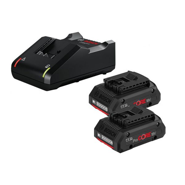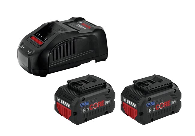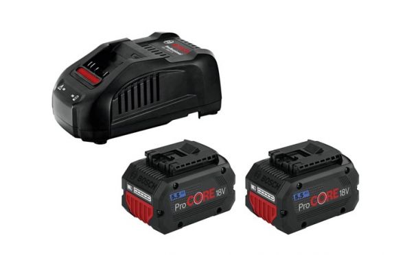 Μεγάλη αντοχή και γρήγορη φόρτιση: Με δύο μπαταρίες ProCORE18V 5.5Ah και τον φορτιστή GAL 1880 CV, αυτό το αρχικό σετ προσφέρει σταθερή ισχύ.