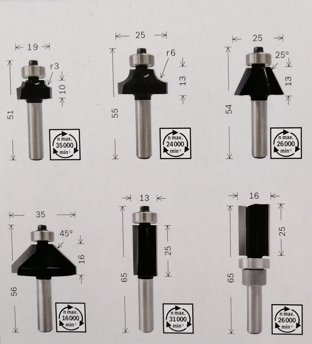 • BOSCH - Σετ Φρέζες για Ρούτερ για προφίλ 6mm - 6 Τεμαχίων.