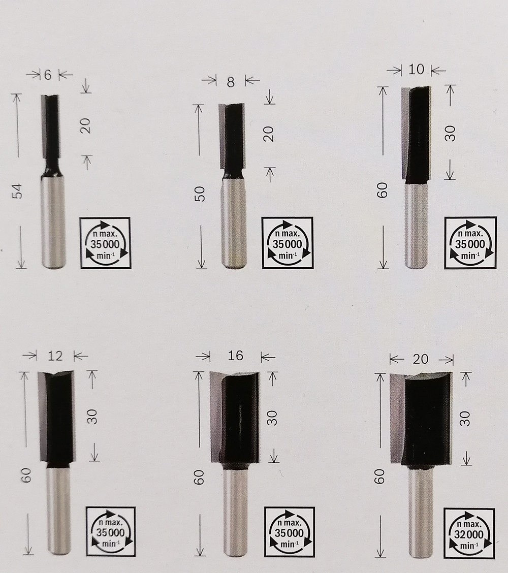 - BOSCH - Σετ Φρέζες για Ρούτερ για ευθεία κοπή 8mm - 6 Τεμαχίων.