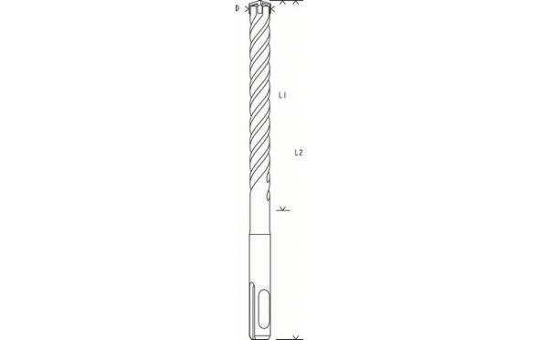 Αποτελεσματικό τρύπημα και ανθεκτικό ενάντια στον οπλισμό. Μύτη κεντραρίσματος: Για βαθύ και σταθερό κεντράρισμα σε μπετόν. Τετράκοπο: Η τετράκοπη γεωμετρία εμποδίζει ένα σφήνωμα στον οπλισμό, η μύτη του τρυπανιού δεν σπάει. Μορφή τετραπλής ελίκωσης: Γρήγορη μεταφορά της σκόνης για μεγαλύτερη ταχύτητα τρυπήματος και λιγότερη φθορά. Η μοναδική ασύμμετρη σχεδίαση της κεφαλής και η ελίκωση παρέχουν γρήγορη απομάκρυνση της σκόνης για μεγαλύτερη ταχύτητα διάτρησης, χωρίς μείωση της στιβαρότητας. Για τοιχοποιία, μπετόν και οπλισμένο μπετόν. Για όλα τα περιστροφικά πιστολέτα με υποδοχή SDS-plus.