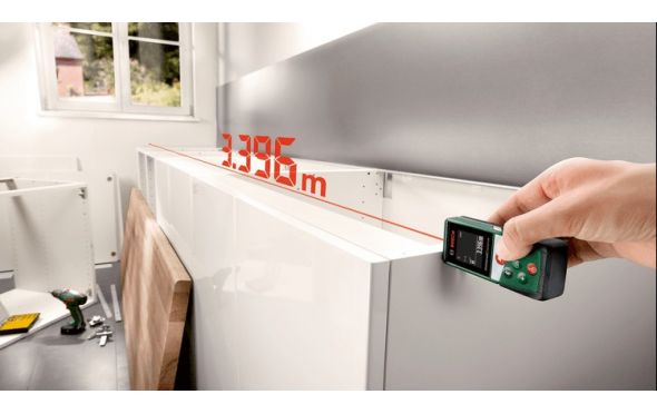 - Το UniversalDistance 40C C δε μετρά μόνο αποστάσεις έως και 40 μέτρα με ακρίβεια λέιζερ αλλά επίσης παρέχει τις διαστάσεις επίπλων με μια ματιά.