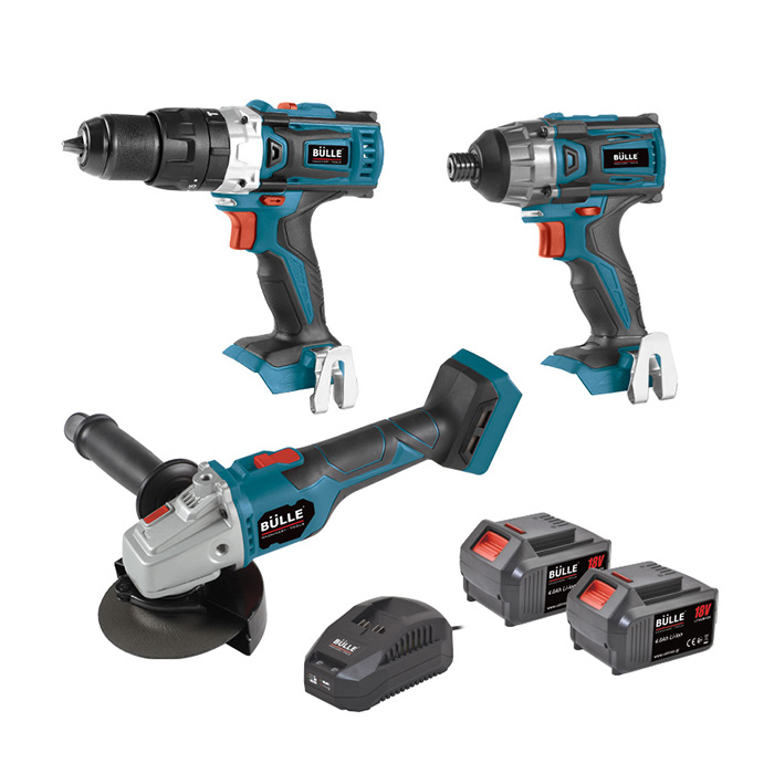 BULLE - Σετ Κρουστικό Δραπανοκατσάβιδο Παλμικό Κατσαβίδι & Γωνιακός Τροχός 18V Li-Ion Brushless (2x4.0Ah)