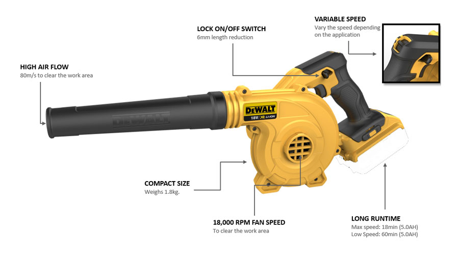 Dewalt - DCV100 Φυσητήρας 18V Li-Ion (Χωρίς Φορτιστή - Μπαταρία)