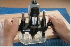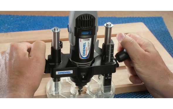 - Μετατρέπει το εργαλείο σας Dremel σε μια βυθιζόμενη φρέζα για το φρεζάρισμα κύκλων, για εργασίες επιγραφών και σκαλισμάτων, διακοσμητικές ακμές και για φρεζάρισμα παράλληλα σε μια ακμή.