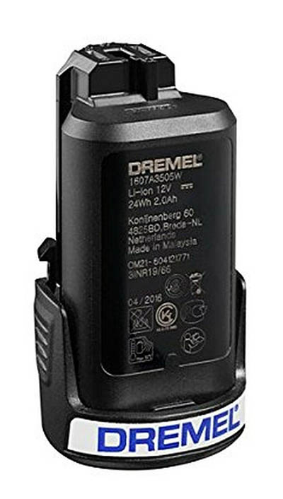- Πακέτο μπαταριών Li-Ion (ιόντων λιθίου) 12 V για χρήση με το πολυεργαλείο μπαταρίας Dremel 8200 και το8220.