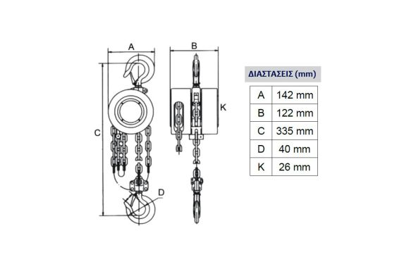 - Παλάγκο αλυσίδας χειρός με Ικανότητα Ανύψωσης 1 Ton. / 3 m Συμπαγής Κατασκευή με Αλυσίδα από Χάλυβα.
