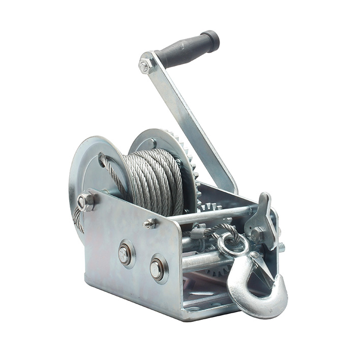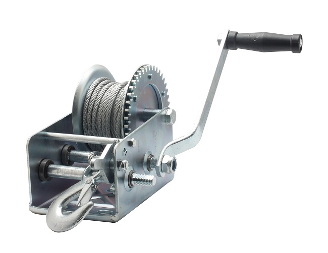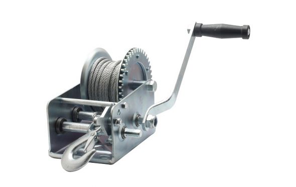 Διπλό γρανάζι - δύο ταχύτητες. Με σκανδάλη για φρένο και στις δύο κατευθύνσεις. Γαλβανιζέ. Συνοδεύεται με συρματόσχοινο Ø 5x10 m.