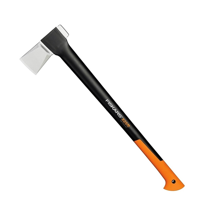 • Το τσεκούρι σχισίματος XL X25 της Fiskars είναι ιδανικό για μεγάλους κορμούς με διάμετρο μεγαλύτερη από 30 cm. Η παχιά λεπίδα του δίνει επιπλέον ώθηση για να χωρίσει ακόμα και τα πιο χοντρά κούτσουρα.