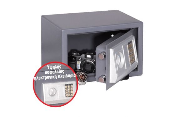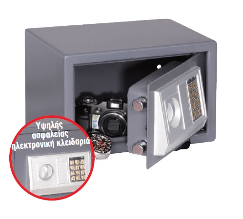 Στιβαρή Ατσάλινη Κατασκευή Με κλειδί ασφαλείας / ανάγκης Με υψηλής ασφαλείας ηλεκτρονική κλειδαριά Με δυνατότητα προγραμματισμού συνδυασμών απο 3 εως 8 ψηφία Με ηλεκτροστατική βαφή πούδρας Συμπεριλαμβάνονται μπαταρίες