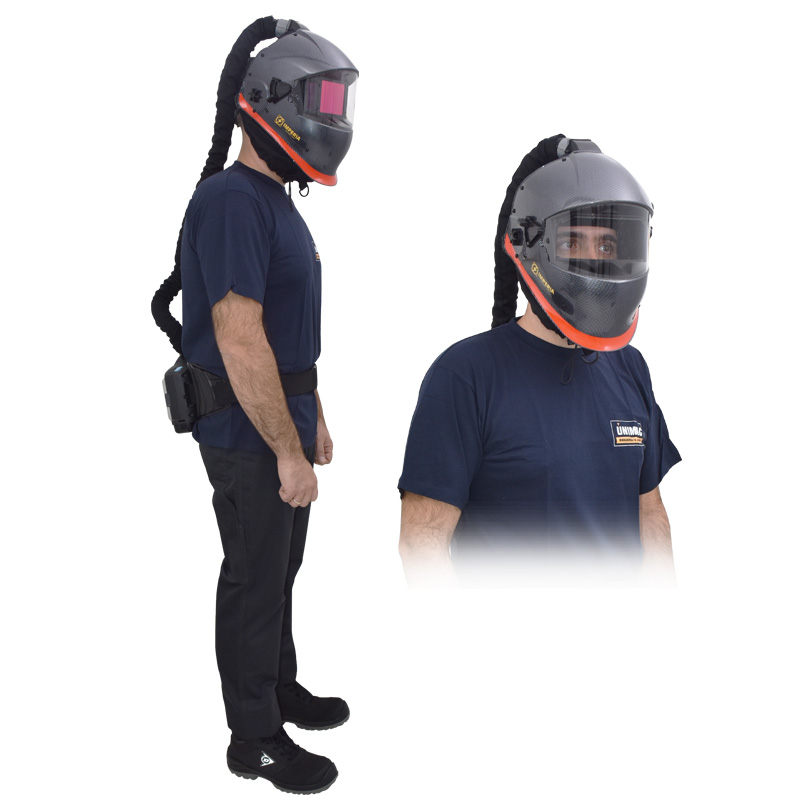 - Η μάσκα είναι εξοπλισμένο με ένα σύστημα ενεργού φίλτρου αέρα (PAPR-POWERED AIR WITH PURIFING RESPIRATOR) για την προστασία του χρήστη έως 99,8% αιωρούμενων σωματιδίων συγκόλλησης , σκόνης καπνού και αναθυμιάσεων συγκόλλησης .