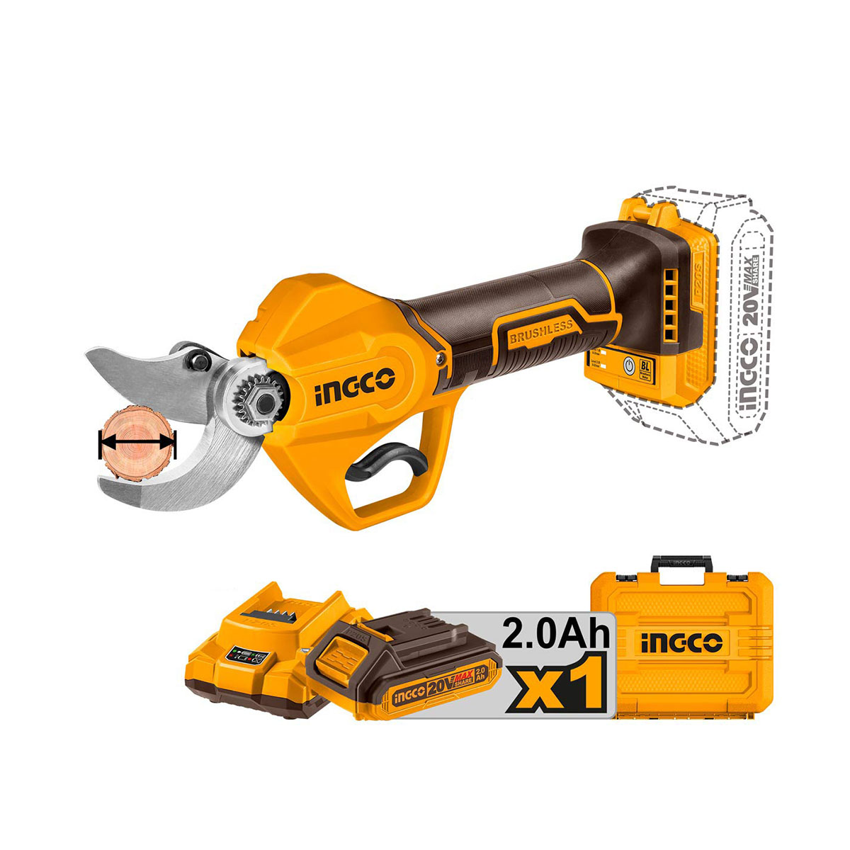 Ingco - CSSLI203083 Ψαλίδι Κλαδέματος Μπαταρίας 20V Li-Ion Brushless (1x2.0Ah)