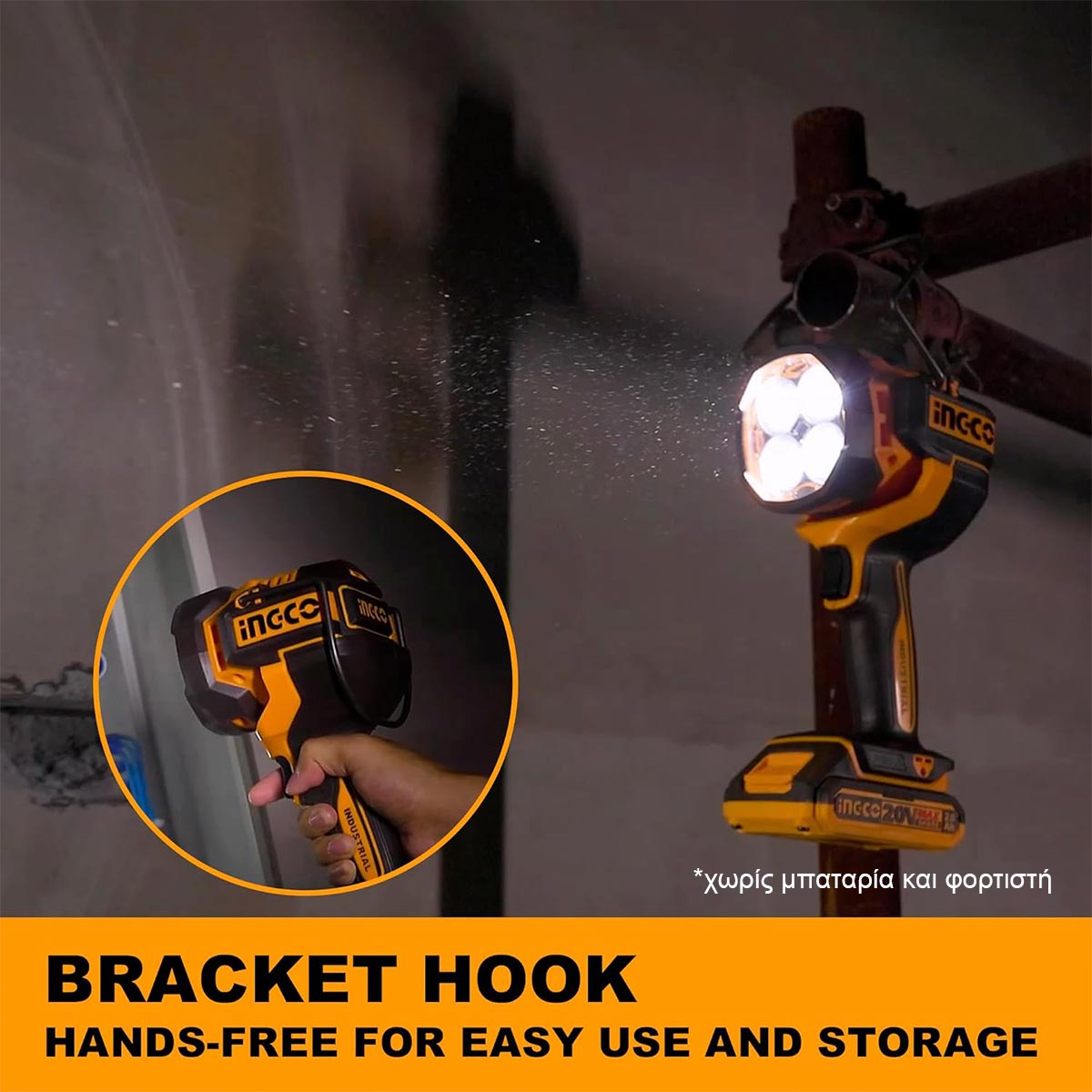Ingco - CWLI20885 Προβολέας Εργασίας Μπαταρίας 20V Li-Ion - Χωρίς Μπαταρία & Φορτιστή (Solo)