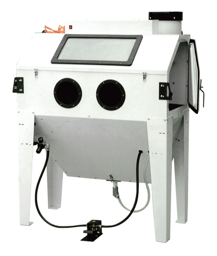 Επαγγελματική καμπίνα αμμοβολής 420 Lt με 2 πλαϊνά πορτάκια, ανοιγόμενη πάνω θυρίδα(καπάκι) και εσωτερικό φώς.