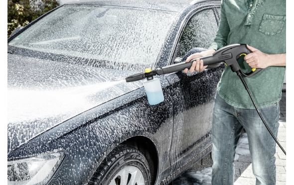 - Προσθέστε καθαριστικό Kärcher κατευθείαν στο ακροφύσιο αφρού, συνδέστε το ακροφύσιο στο πιστόλι και εφαρμόστε τον αφρό.