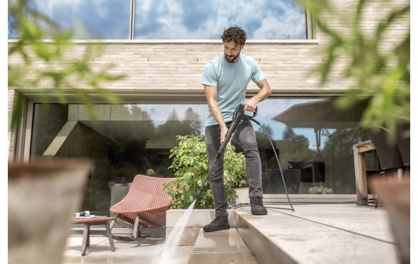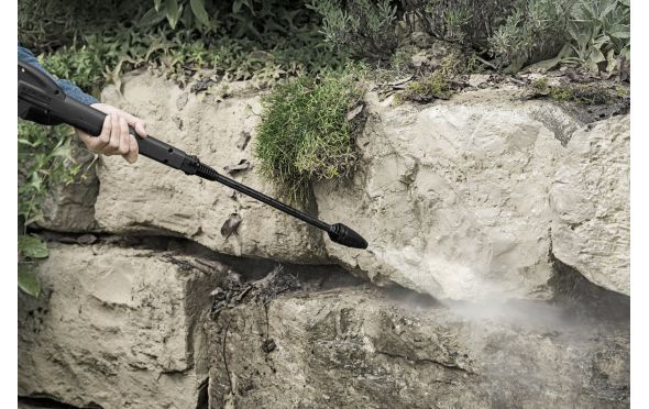 • Η εκτεταμένη γκάμα εξοπλισμού περιλαμβάνει ένα πιστόλι με πρακτικό προσαρμογέα Quick Connect μέσω ενός εύκαμπτου σωλήνα υψηλής πίεσης PremiumFlex, ένα αξιόπιστο φίλτρο νερού που προστατεύει την αντλία, μια κάνη ψεκασμού Vario Power (VPS) και ένα τούρμπο μπεκ με περιστρεφόμενο σημειακό πίδακα.