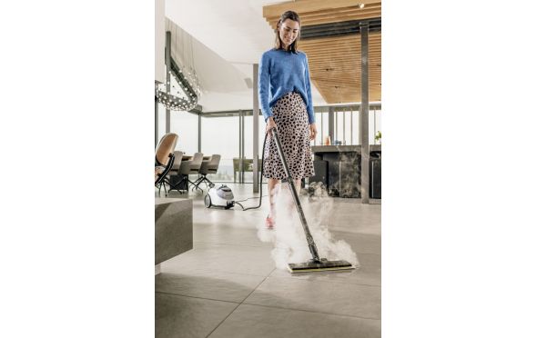 • Ο σχολαστικός καθαρισμός με τον ατμοκαθαριστή Kärcher απομακρύνει το 99,999% των ιών¹⁾ και το 99,99% όλων των κοινών οικιακών βακτηρίων²⁾ από τις τυπικές σκληρές επιφάνειες του νοικοκυριού. Και χάρη σε μια μεγάλη γκάμα διαθέσιμων εξαρτημάτων, μπορεί να καθαρίσει τέλεια λείες επιφάνειες, απορροφητήρες, γωνίες και κενά. Το ιδιαίτερα πρακτικό σίδερο πίεσης ατμού που επίσης περιλαμβάνεται επιταχύνει το σιδέρωμα κατά 50%. Η λειτουργία VapoHydro επιτρέπει επιπλέον την προσθήκη ζεστού νερού και την ευκολότερη απομάκρυνση και πλύση των επίμονων ρύπων.
