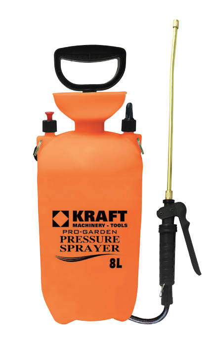 KRAFT - 621220 Ψεκαστήρας Προπίεσης 8Lt. Βαλβίδα ασφαλείας εκτόνωσης πίεσης. Ρυθμιζόμενο μοτίβο ψεκασμού ομίχλη σε πλήρη ψεκασμό. Μεταλλικός μοχλός άντλησης. Αντλία υψηλής απόδοσης. Ορειχάλκινος αυλός & ορειχάλκινο ακροφύσιο.