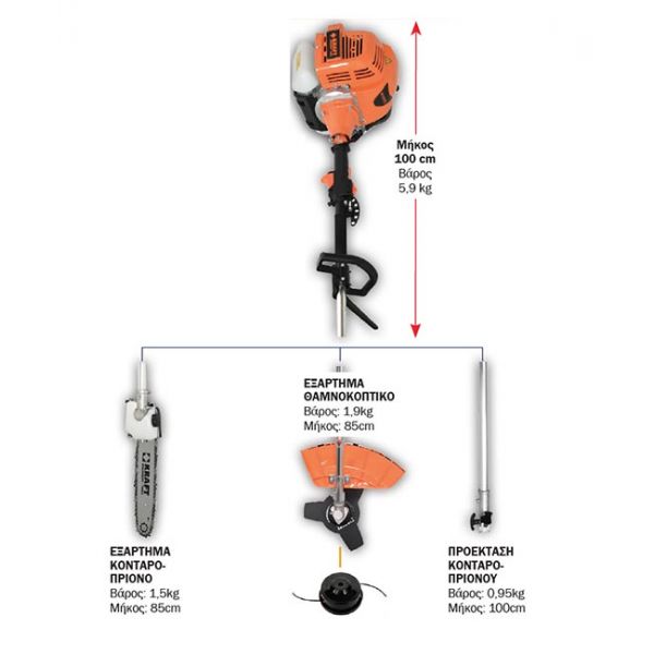 - KRAFT - Θαμνοκοπτικό Βενζίνης Διαιρούμενο 52cc/3.0hp.