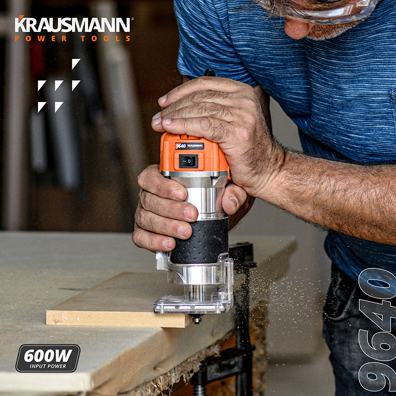 • Ρούτερ περιθωρίων compact βυθιζόμενο KRAUSMANN® 9640, με ισχύ 600W και ρυθμιζόμενη ταχύτητα.